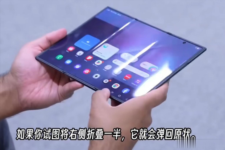 另外三星的这块内屏还分折叠顺序,若是不小心顺序搞反了很容易弄坏。至于其折痕水平则如下图所示,控制得还不错,基本和华为三折叠属于同一水准。